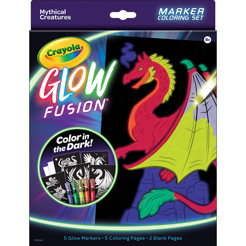 Crayola Glow In The Dark Coloring Set With Glow Markers Mythical Creature Halloween Gift For Kids Ages 8 Walmart Com